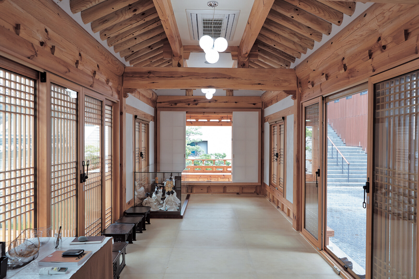 가회동성당 한옥은 이 모든 과정을 처음부터 계산하고 조율했기에 보와 도리가 선보이는 전통미는 오롯이 살아 있다. 자연 속에 집 한채를 짓는 개념을 넘어 주변 환경이 주는 온갖 도전을 받아들이고 어우러지는 과정을 감내하고 것이 지금의 한옥이다. 그래서 오늘의 한옥은 전통의 양식이면서도 현대 건축에 가깝다고 볼 수 있다.