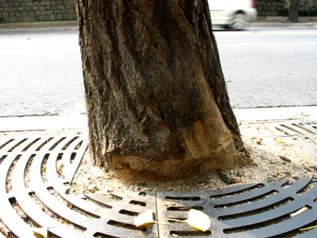 또한 가로수가 지면에 닿는 부분을 보호하기 위해 설치한 철제 덮개로 인해 많은 문제점이 나타나고 있다. 나무가 성장해가며 형태가 변형될 때, 덮개가 들리는 현상이 발생한다. 이를 방지하는 방법으로 가로수 밑 부분을 자르고 있는데 이로 인해 뿌리가 썩을 수도 있다. 이를 해결하기 위해서는 차라리 철제 보호 덮개를 제거하여 나무를 있는 그대로 두거나, 유연성이 있는 덮개로 바꾸어야 한다.